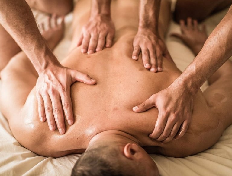 4 Hands Massage offers a unique and relaxing experience with 4-hand massaging technique performed by male therapists.
